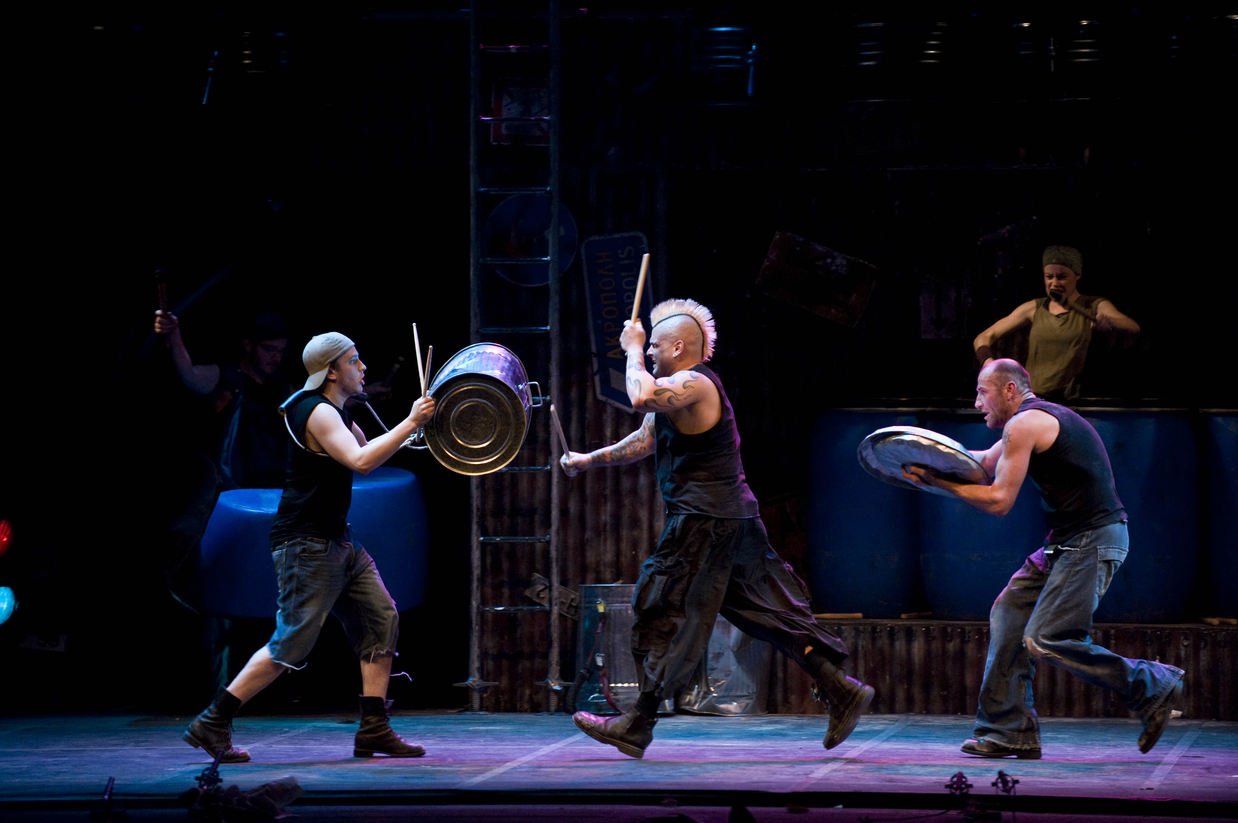 Essa turma com dez artistas — apenas oito entram em cena, mas como o desgaste é grande há um rodízio — se apresenta no Teatro Bradesco de quinta (23) a domingo (26). Munido de latas de lixo, vassouras, carrinhos de supermercado e outros cacarecos, o elenco alterna números de acrobacia e batucada em uma experiência única.
