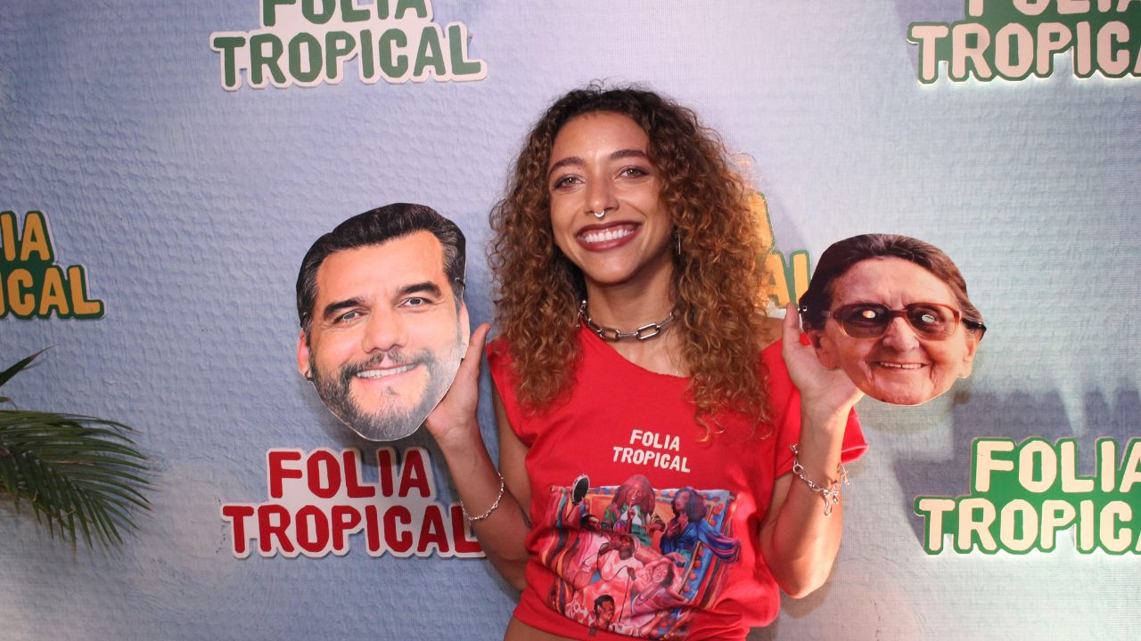 Depois de participar do show do BaianaSystem no Carnaval de Salvador, no último sábado (14) — onde integrou o trio elétrico Navio Pirata, no Circuito Campo Grande — a atriz Alice Carvalho seguiu direto para o Sambódromo da Marquês de Sapucaí, no Rio, para acompanhar de perto o segundo dia de desfiles do Grupo Especial. É a segunda vez que a artista vê as escolas na avenida. “De arrepiar”, resume.