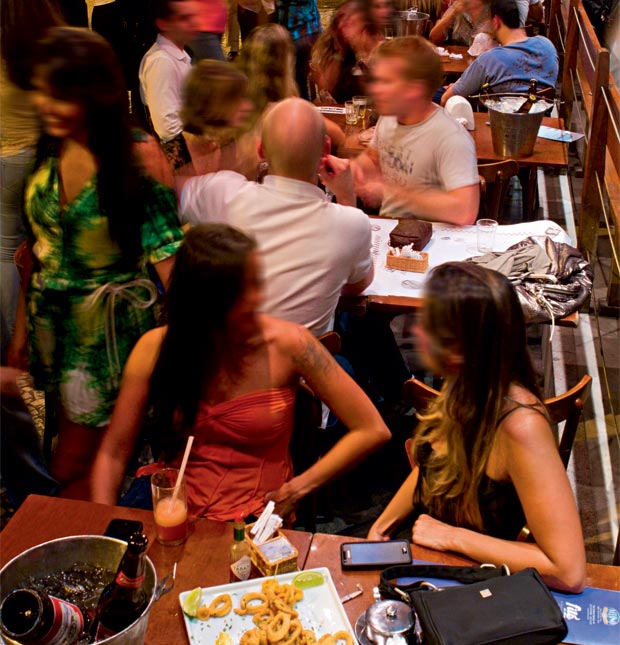 Fred já sabia. Notório conquistador, o craque do Fluminense andou batendo ponto por lá desde que chegou ao Rio. No melhor endereço para paquerar da cidade, uma multidão mais ou menos famosa ocupa o salão e a calçada atrás de algo além dos comes e bebes. O público entre 25 e 30 anos se vale de táticas simples mas eficientes para se aproximar de seus alvos. Oferecer uma caipivodca (R$ 29,00, com a vodca francesa Grey Goose) ou compartilhar um balde de cerveja (R$ 10,90 cada garrafa de 600 mililitros de Antarctica original) estão entre as estratégias mais praticadas. Inaugurado em 2008, o bar presta (apenas no nome) uma homenagem ao Veloso original, frequentado por Tom Jobim e Vinicius de Moraes, onde hoje funciona o turístico Garota de Ipanema, dos mesmos donos. A ideia de um ponto de encontro de amigos sem maiores frescuras funcionou: a esquina virou destino certo para a parada depois da praia e para o aquecimento antes da noitada ? conseguir uma mesa pode ser um desafio, mas também é outra boa desculpa para puxar conversa. Sem desviar a atenção do movimento, a turma belisca lula à dorée (R$ 45,00), a campeã de pedidos entre os tira-gostos, e croquetes de picanha ou mortadela (R$ 31,00 cada porção com doze unidades).