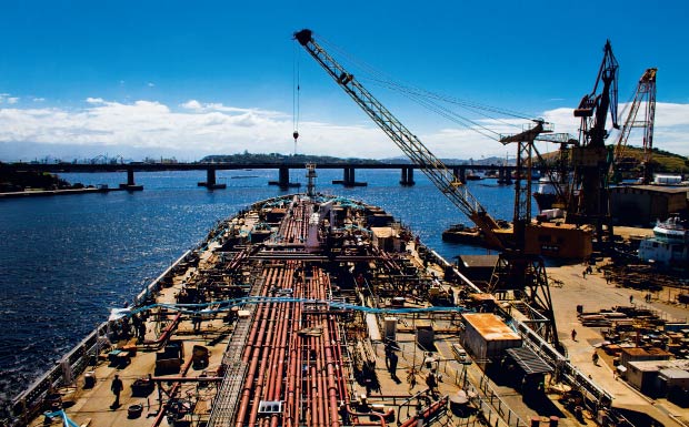 O setor naval é hoje o que mais atrai investimentos na economia fluminense. Segundo dados da Federação das Indústrias do Rio de Janeiro (Firjan), um grupo de quinze corporações e uma miríade de fornecedores movimentará quase 15,4 bilhões de reais até dezembro de 2014, volume que posiciona a construção de embarcações à frente de outras áreas também em franca expansão no estado, como siderurgia e petroquímica. Tamanha opulência está diretamente ligada à exploração de petróleo na camada pré-sal. Desde que o governo federal determinou, na década passada, que todo equipamento comprado ou arrendado pela Petrobras deveria ter um índice de nacionalização de pelo menos 65%, as encomendas não param de crescer. Nos próximos dois anos, a divisão de transportes da estatal, a Transpetro, despejará 9,5 bilhões de reais em pedidos às empresas, que, por sua vez, aplicarão mais 5,9 bilhões na modernização, ampliação e construção de novas instalações. “Vivemos um momento histórico, principalmente se levarmos em conta o marasmo que os estaleiros enfrentaram no passado”, orgulha-se Manuel Ribeiro, presidente do conselho de administração do grupo Synergy Shipyard, holding que controla o Mauá e também o Eisa, fabricante localizado no outro lado da baía, na Ilha do Governador.