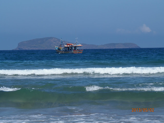 Ondas constantes, das frontais no centro às direitas e esquerdas ao longo do arco da praia, convidam para a prática do surfe, do wakeboard e do bodyboard. A bandeira vermelha indica que há correntes fortes puxando para fora, mas nada que faça os esportistas desistirem, quando o swell convida a molhar os pés (Foto: Heloisa Barros).