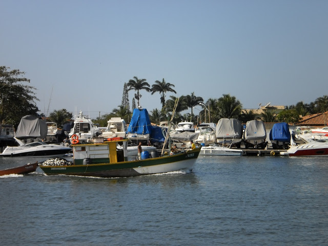 Enquanto o pesqueiro parte para alto mar, lanchas de luxo descansam na marina do outro lado do Itajuru. Esta é a vista que se tem a partir das mesas do único – e bom – restaurante do lugar.