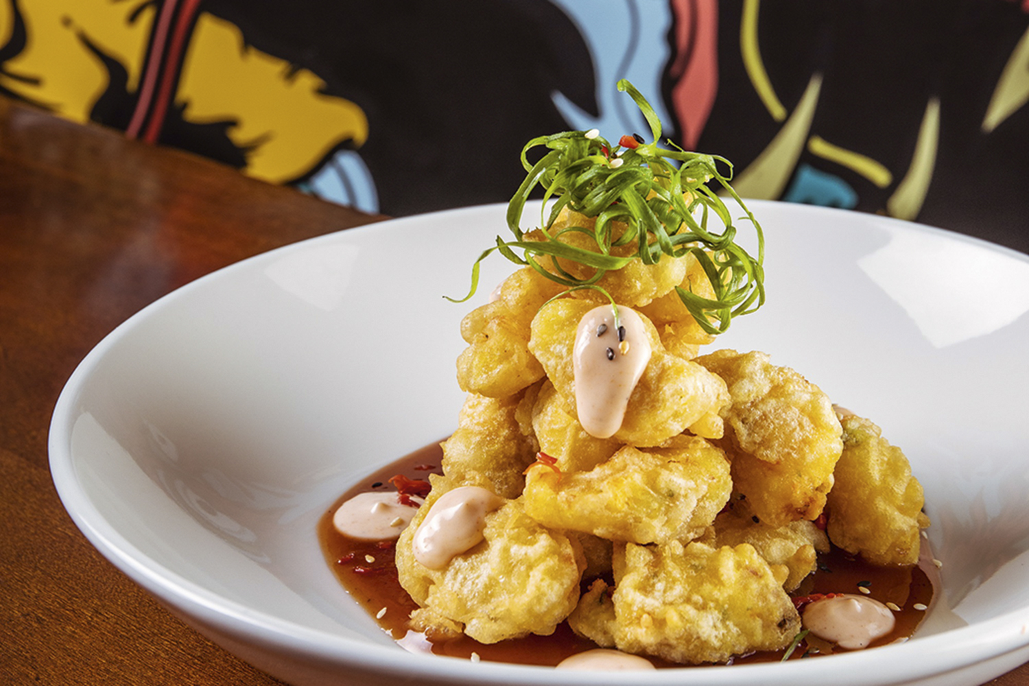 A mistura de sabores do cardápio bolado pelo chef Marco Espinoza leva ao shopping novidades como camarão em tempurá com molhos cremoso spicy e agridoce