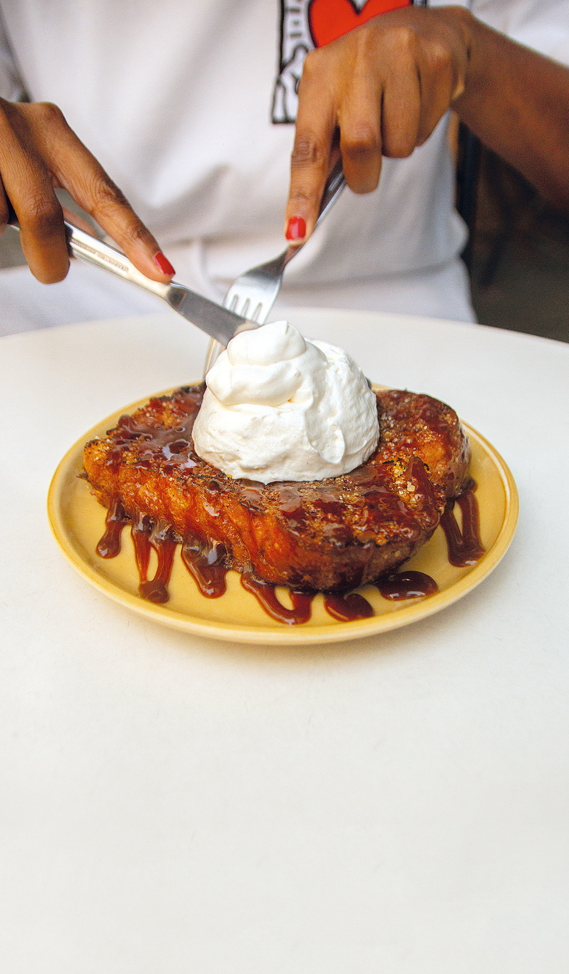 No comando da ala doce, a chef Louanne Loiseau apresenta criações como cheesecake basque, kouign amann e french toast com chantili