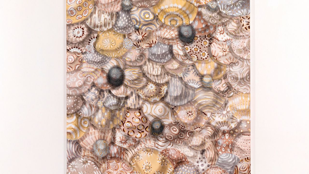 A figura humana desaparece para dar lugar a pinturas com repetições de círculos desenhados à mão livre, sem rigor geométrico, ou ainda em versão preto e branco, explorando recursos como textura e contraste. outra aposta são as esferas e meias-esferas em fibra de vidro, nas quais brinca com a dimensão espacial das peças e do ambiente expositivo.